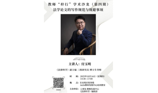 教师“梓行”学术沙龙是西北政法大学人事处、教师发展中心与《法律科学》编辑部共同搭建的教师论文写作和学术交流平台,旨在通过常态化、专业化、精准化的指导活动,持续提升教师科研创新和论文写作能力,为推动学校高质量科研成果产出贡献更多智慧和力量。